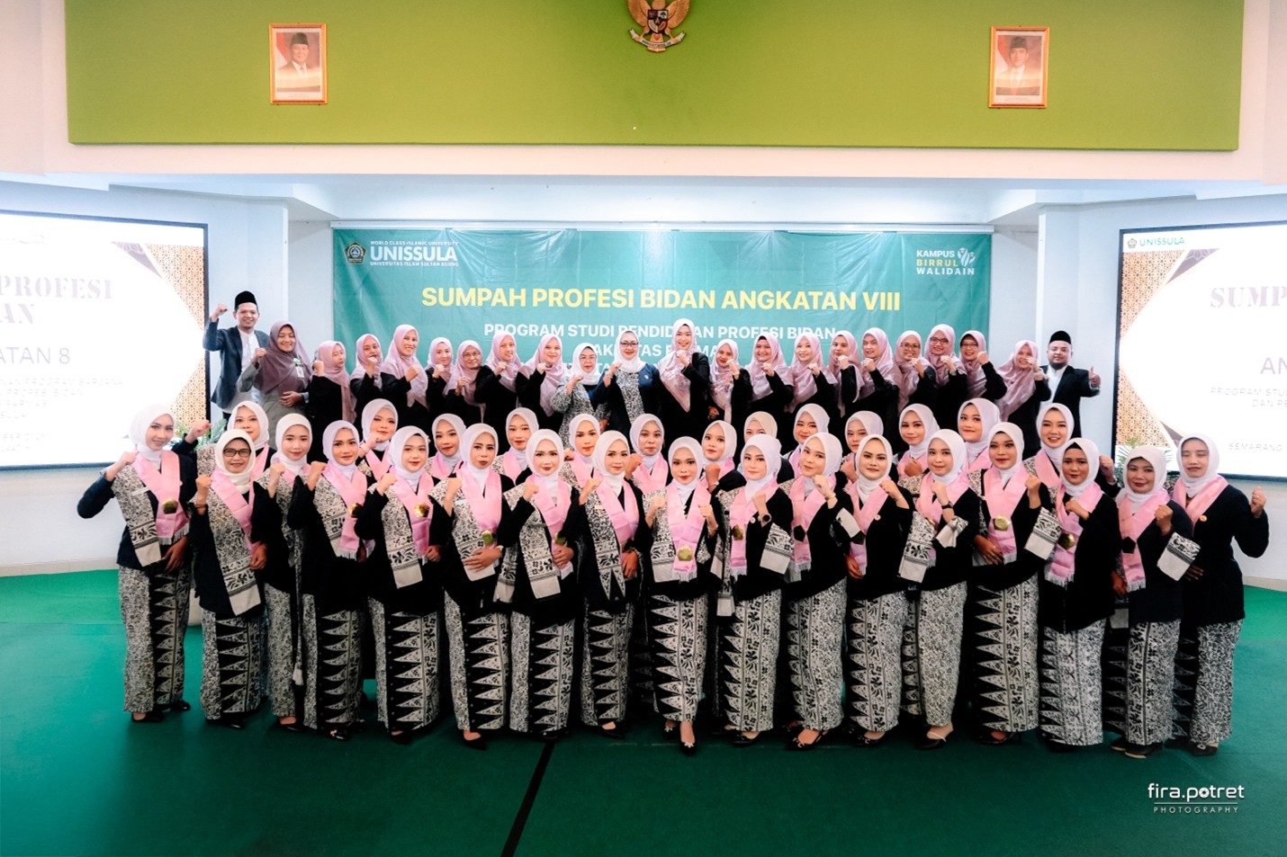 Prodi Pendidikan Profesi Bidan Unissula menggelar prosesi sumpah profesi angkatan ke-8. Sejumlah 30 bidan baru resmi disumpah oleh Ketua Pengurus Daerah Ikatan Bidan Indonesia (IBI) Jawa Tengah Dr Istirochah SSi T Bd MKes. Sehingga total lulusan bidan Unissula 191 yang tersebar hingga internasional. Acara berlangsung di aula Gedung Kuliah Bersama Lantai 10 Unissula, Selasa, (23/12/2025).