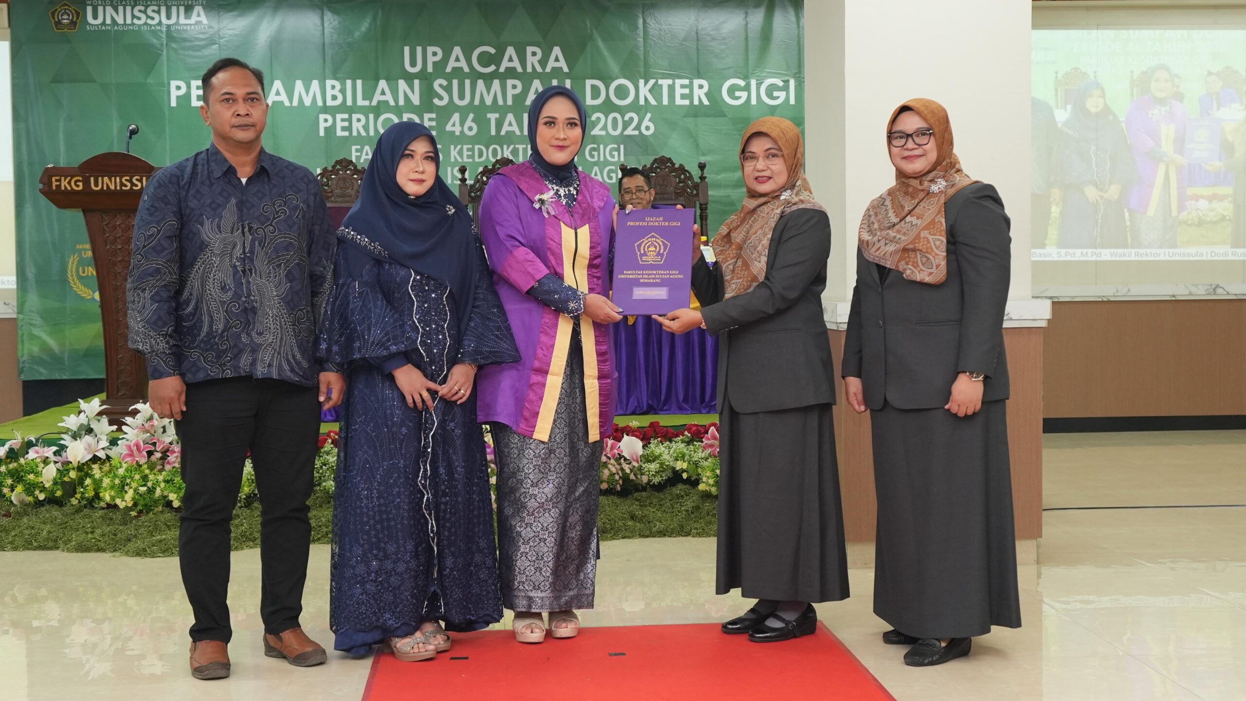 Fakultas Kedokteran Gigi (FKG) Unissula meluluskan 25 dokter gigi baru pada pengambilan sumpah dokter gigi ke- 46, Selasa (7/4/2026). Sehingga saat ini FKG telah meluluskan 759 dokter gigi sejak 2018. “Saya titip sumpah dokter yang telah diucap tadi benar-benar masuk ke relung hati yang paling dalam. Termasuk memperlakukan teman sejawat dengan baik, dan selalu mengutamakan keselamatan pasien,” ungkap Dekan FKG Dr drg Yayun Siti Rochmah Sp BM.