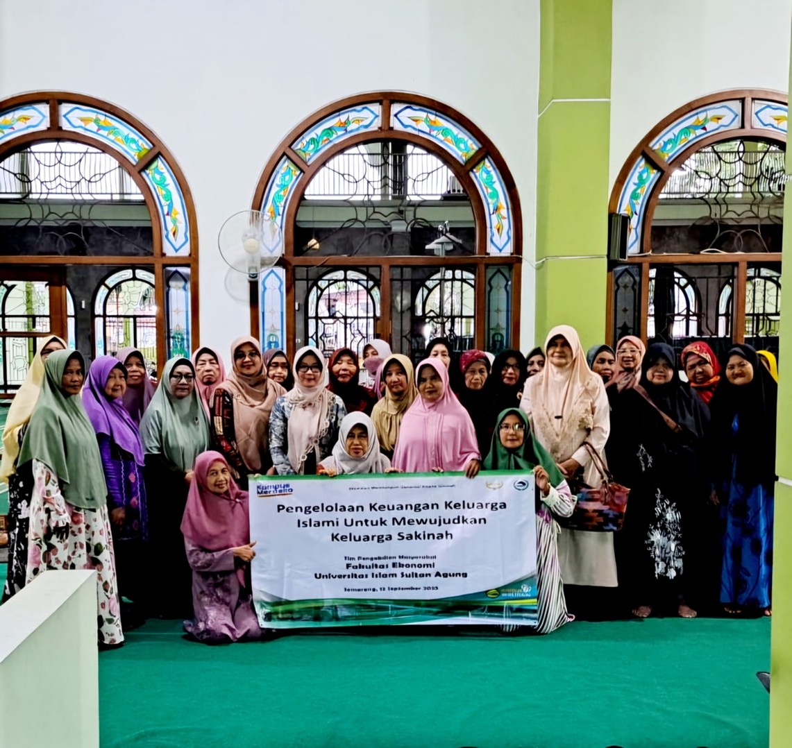 Dosen Fakultas Ekonomi dan Bisnis (FEB) Unissula mengadakan pengabdian masyarakat pada Jumat (12/9/2025). Mereka adalah Prof Dr Indri Kartika SE MSi Ak CA dan Dr Dista Amalia Arifah SE MSi Ak CA. Pengabdian masyarakat difokuskan memberikan sosialisasi dan pendampingan yang bertajuk pengelolaan keuangan keluarga islami untuk mewujudkan keluarga sakinah pada jamaah Masjid Muhajirin, Banyumanik. Tujuannya meningkatkan pemahaman dan kesadaran bagi para ibu -ibu dalam mengelola keuangan keluarga secara syariah, serta dapat bertransaksi digital secara aman dan nyaman.