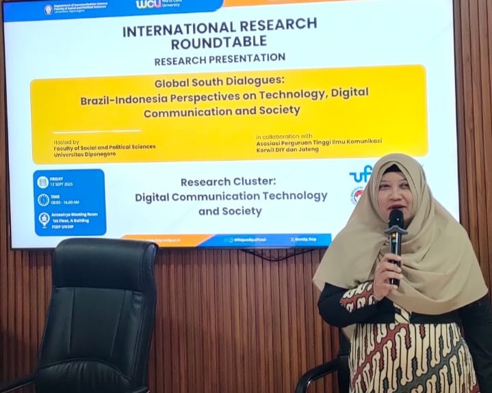 Dosen Fakultas Ilmu Komunikasi (Fikom) Unissula, Made Dwi Adnjani SSos MIKom menyampaikan pandangannya di forum International Research Roundtable di Undip (9-18/9/2025. Ia menyampaikan gagasannya mengenai peran jaringan kolaboratif digital dalam meningkatkan budaya partisipatif.
