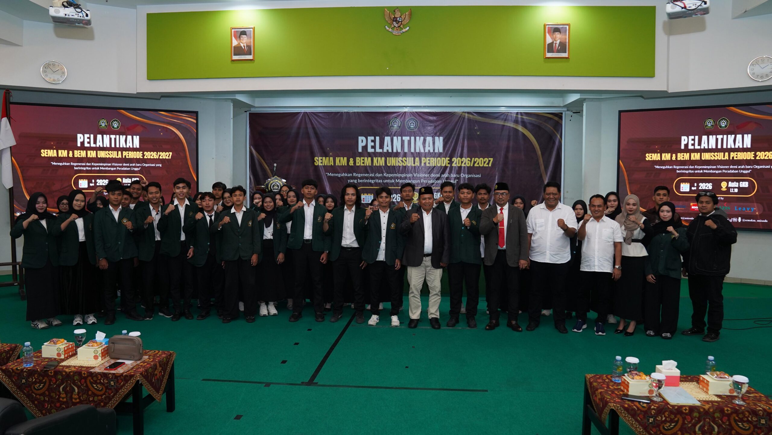 Rektor Unissula Prof Dr Gunarto SH MH melantik pengurus baru Senat Mahasiswa dan Badan Eksekutif Mahasiswa (BEM) Keluarga Mahasiswa Unissula periode 2026/2027, Kamis (9/4/2026). Adapun mereka yang dilantik Ketua Umum Senat Mahasiswa Nabil Awalu Mubarak, Wakil Ketua Umum Rosma Ayu, Sekretaris Jenderal Hani Azizah, dan Bendahara Umum Rocky Satria. Sedangkan sebagai Ketua Umum BEM Andis Fatah Saputra, Wakil Ketua Umum M Thoriq Awabim, Sekretaris Kabinet Ugalih Pujo Dwi Utami dan Bendahara Umum Nikmatul Latifah.
